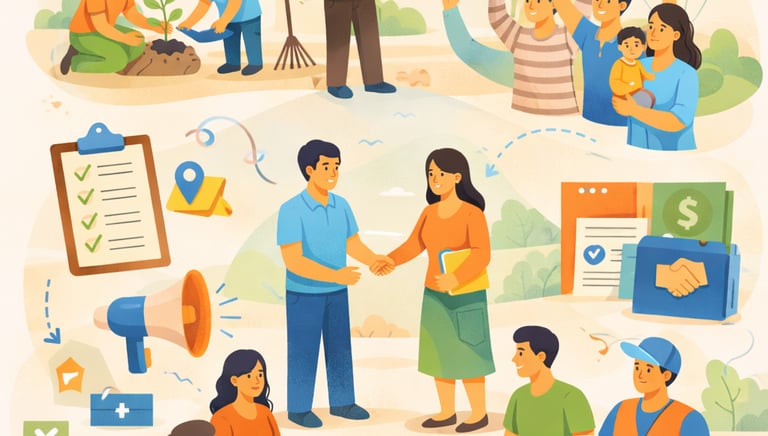 Espacios para que voluntarios, empresas y aliados se involucren con roles claros y acción organizada.